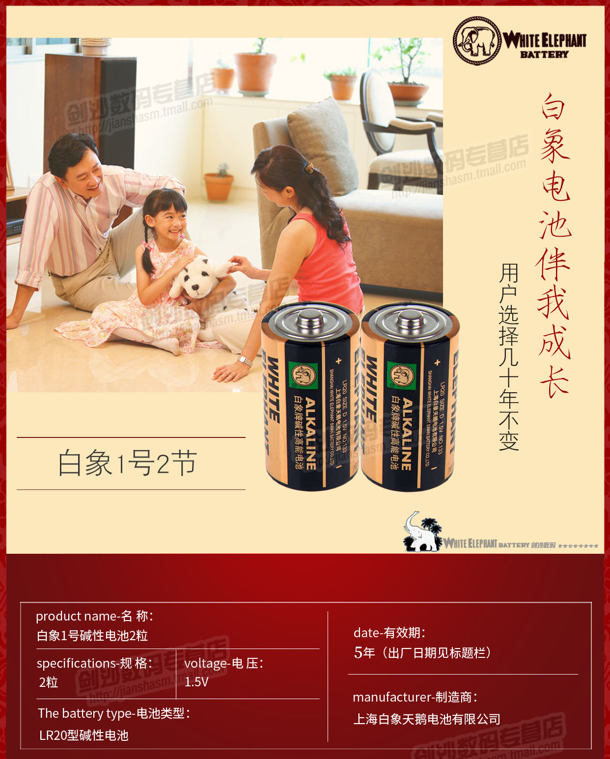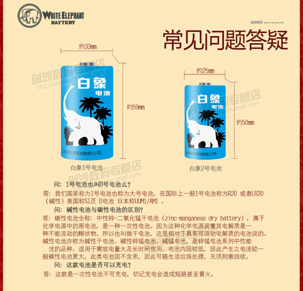 金白象1号2节电池